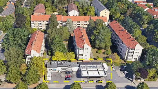 Durch das Auslaufen eines Pachtvertrags mit der Tankstelle wird das Areal ab 2026 um 46 Neubau-Wohnungen ergänzt.