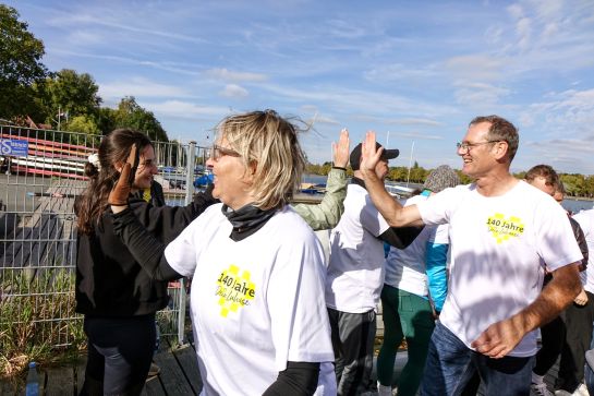 An Bord waren 18 Kolleginnen und Kollegen aus unterschiedlichen Abteilungen. Vorstand Rainer Detjen wollte eigentlich nur zum Anfeuern kommen und hat sich nach kurzer Überredung breitschlagen lassen, mit ins Boot zu steigen, da ein Paddler kurzfristig ausgefallen war. Als passionierter Hobbysegler brachte er viel sportlichen Ehrgeiz mit. Doch der sei nur ein Teil des Drachenboot-Erlebnisses. „Es geht hier in erster Linie ums Mitmachen und um den Spaß am Rennen“, erklärte er fröhlich.